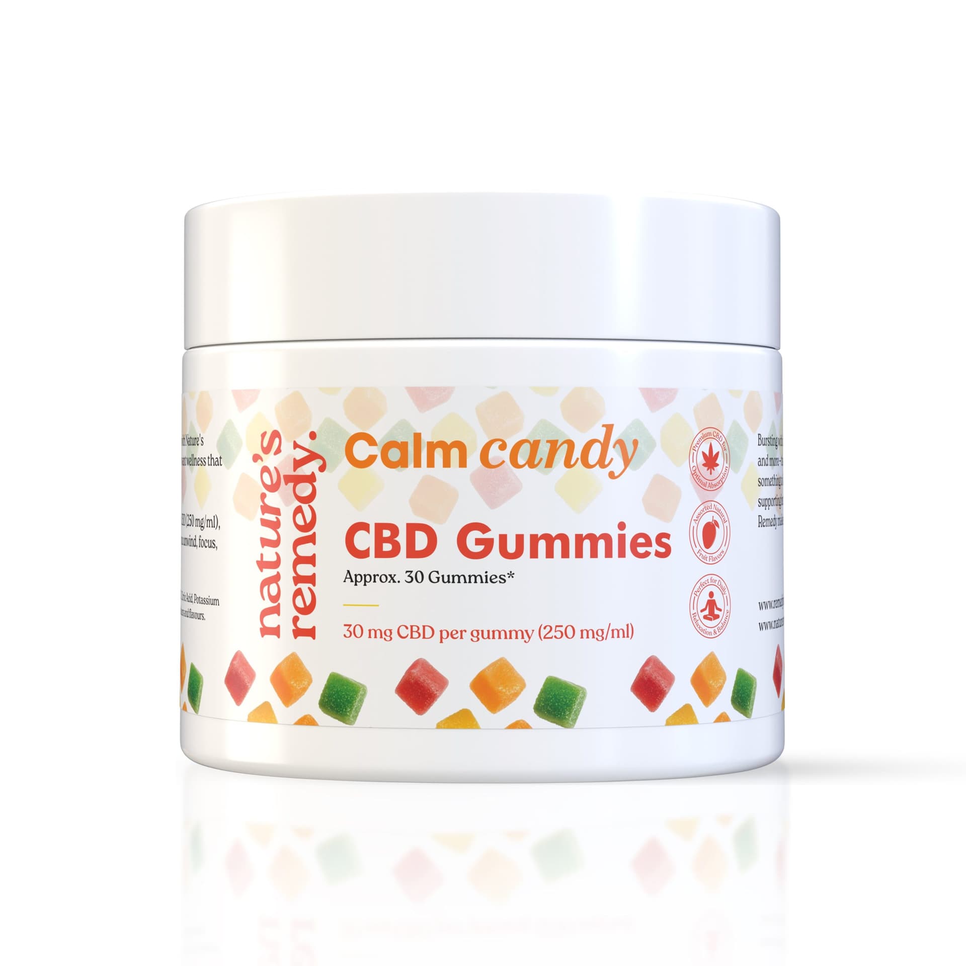 - Available in two sizes with 30 mg CBD per gummy (250 mg/ml)